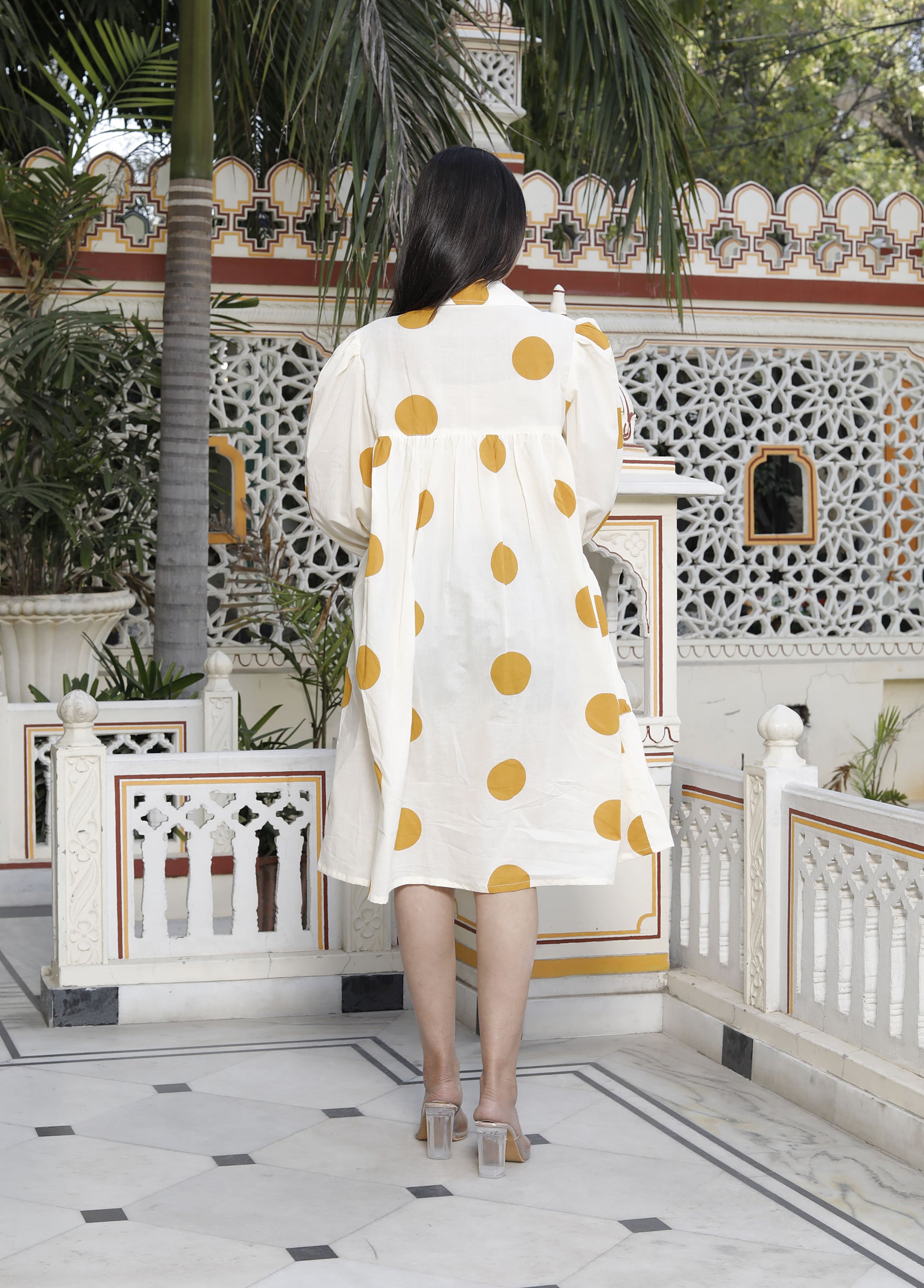 Miravan Womens Polka Dot Printed Collar Neck Yellow Loose Fit A-Line Tiered Dress