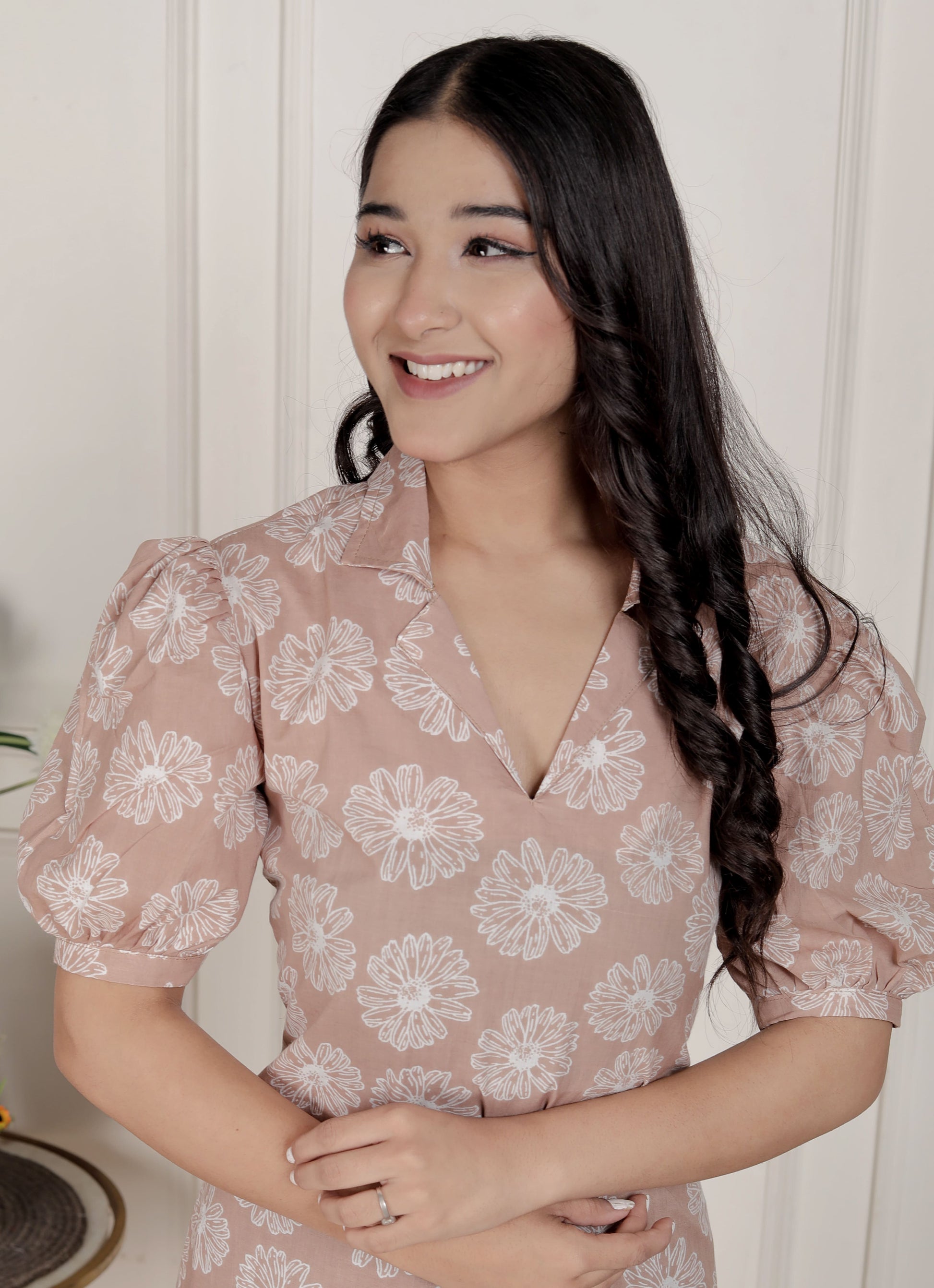 Introducing Our Brown Cotton A-Line Dress, The Perfect Combination Of Comfort And Style. Made From Soft, Breathable Cotton, This Dress Is Ideal For All-Day Wear. The A-Line Silhouette Offers A Flattering Fit, While The Brown Color Adds Warmth And Sophistication. Dress It Up With Heels For A Night Out, Or Keep It Casual With Sandals For A Relaxed Day.