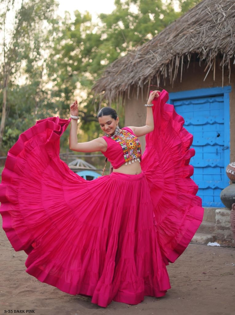 Ready Made Rayon Dark Pink Navratri Lehenga Blouse Koti Set